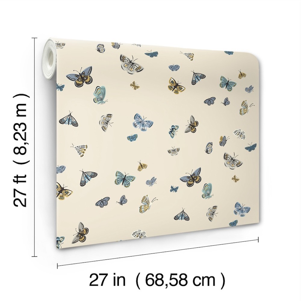 Rifle Paper Co.’s Butterfly House wallpaper is a charming array of fluttering butterflies, with detailed wings and playful colors, including blues, yellows, white, cream and grey. This Butterfly House Wallpaper measures approximately 27 inches wide by 27 feet long, measuring approximately 60.8 square feet per roll.