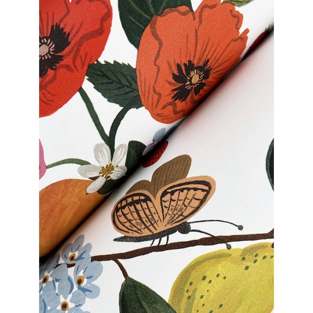 Vases overflow with lush arrangements on Rifle Paper Co.’s Flower Studies wallpaper, accented with a few fluttering butterflies. Illustrated in a variety of rainbow hues. This Flower Studies Wallpaper measures approximately 27 inches wide by 27 feet long, measuring approximately 60.8 square feet per roll.