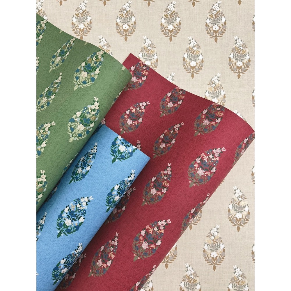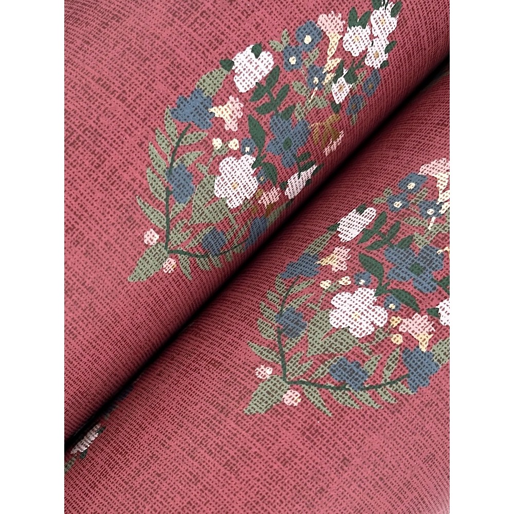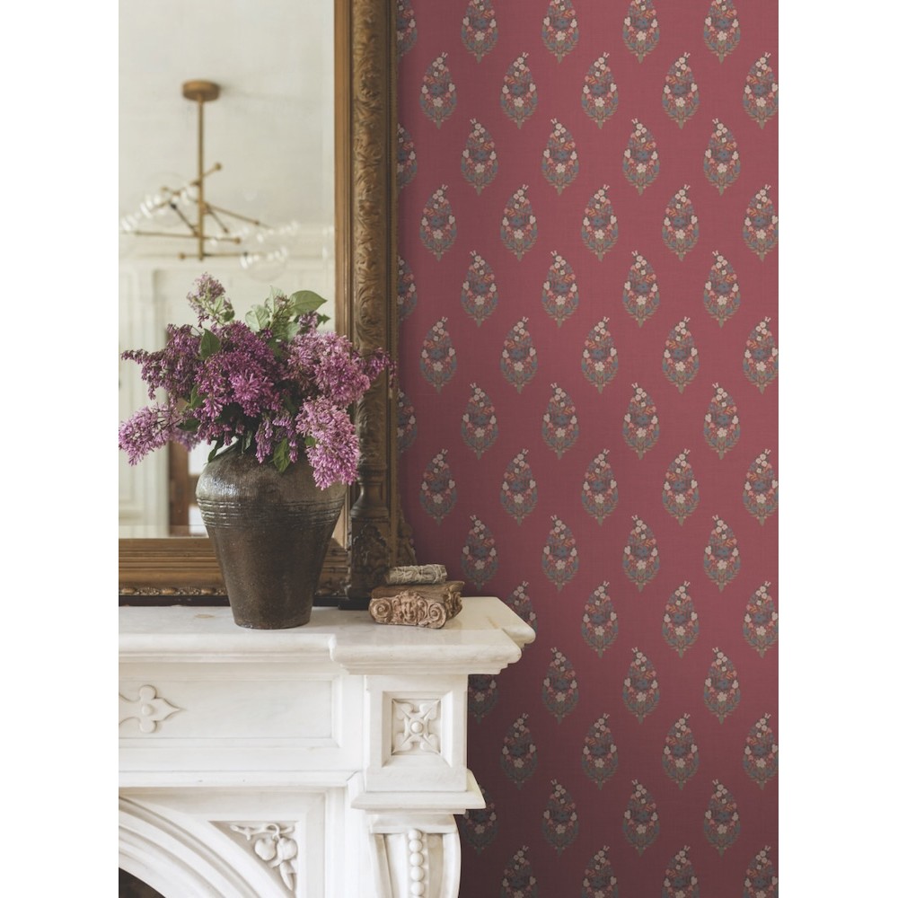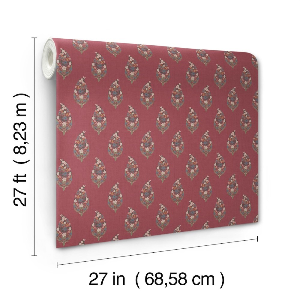 Small flowers and leaves create ornamental teardrop shapes on our fresh take on a traditional Paisley print. Illustrated in shades of cream, blush, blue, yellow, sage, and raspberry. This Paisley Wallpaper measures approximately 27 inches wide by 27 feet long, measuring approximately 60.8 square feet per roll.