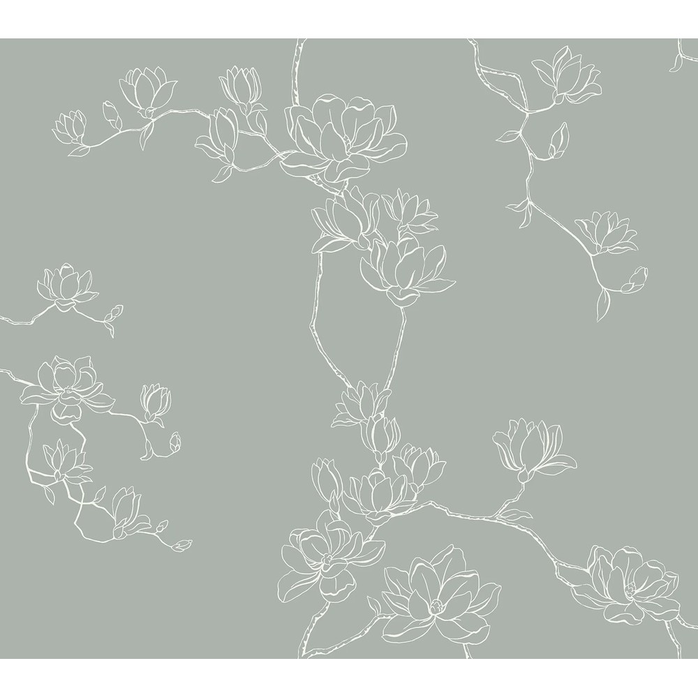 Delicate branches laden with lush magnolia blooms are outlined in white against robin's egg to showcase the bloom’s light, simple beauty. This Magnolia Branches Wallpaper measures approximately 27 inches wide by 27 feet long, measuring approximately 60.8 square feet per roll.