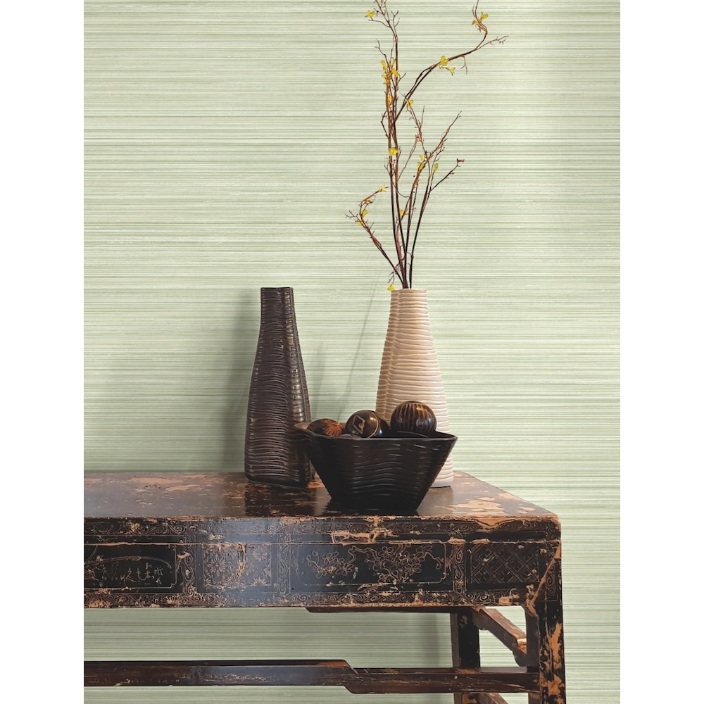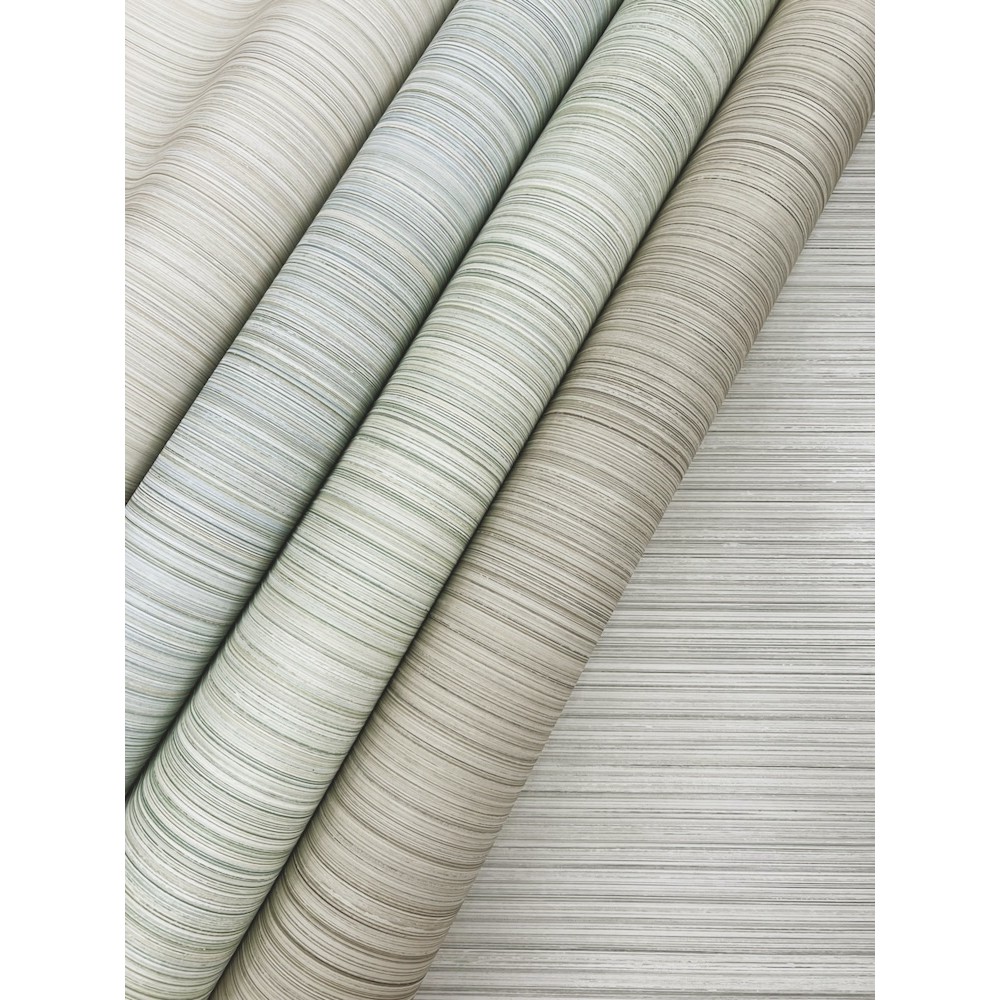 Classic stripes are elevated with intricate raised linework and a restricted color palette of green, beige, and cream. This Alignment Wallpaper measures approximately 27 inches wide by 27 feet long, measuring approximately 60.8 square feet per roll. Textural, organic forms grounded in earthly inspiration.
