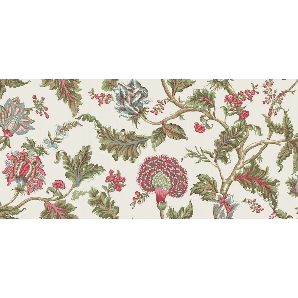 Opulent leaves and lush, multi-layered flowers decorate winding branches in Monroe's impressively scaled Jacobean design. Seen here in a palette of sage, moss, raspberry, pink, powder blue, pale teal, golden taupe, and cream. This Monroe Wallpaper measures approximately 54 inches wide by 27 feet long, measuring approximately 121.5 square feet per roll.