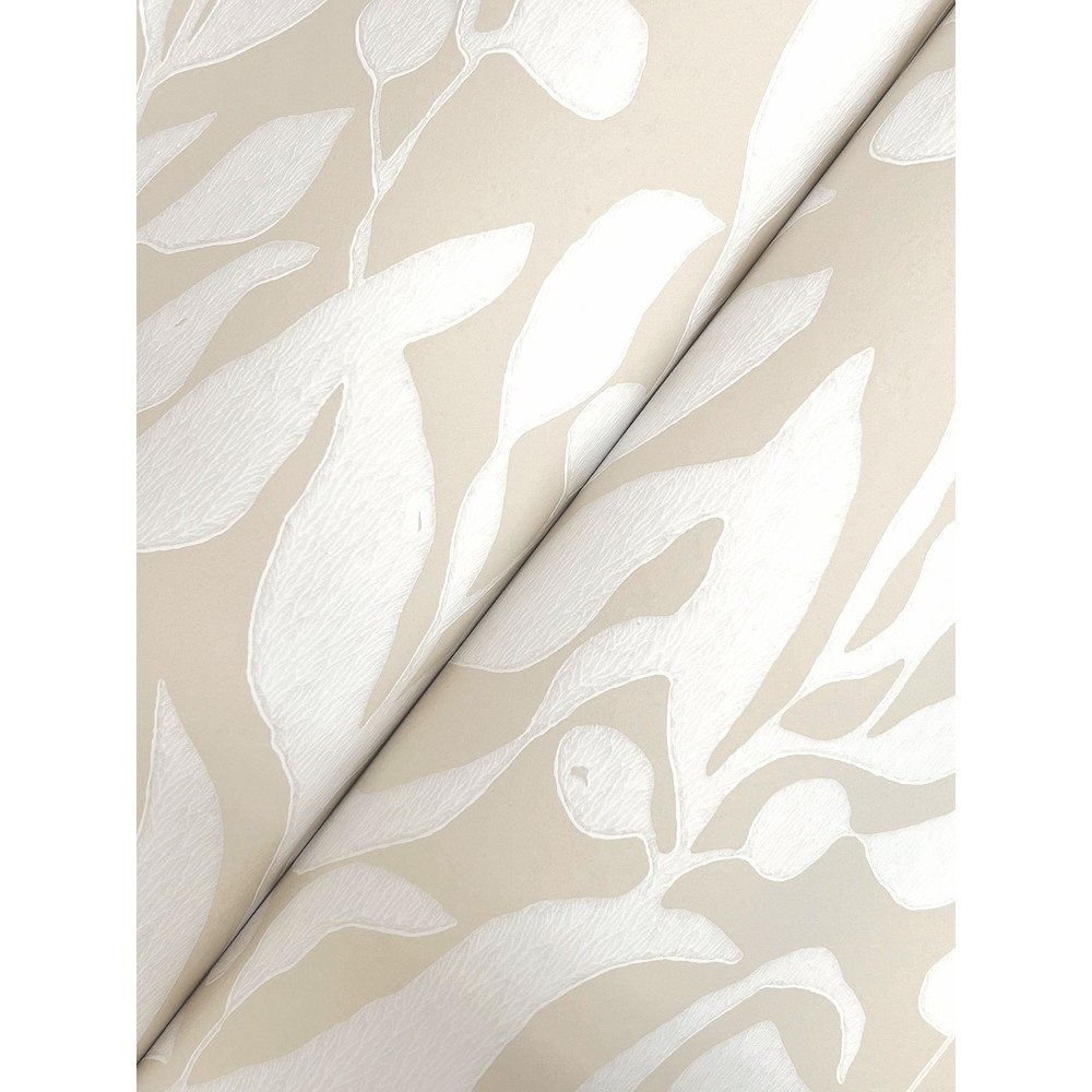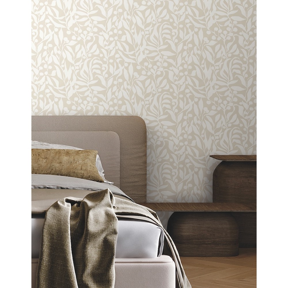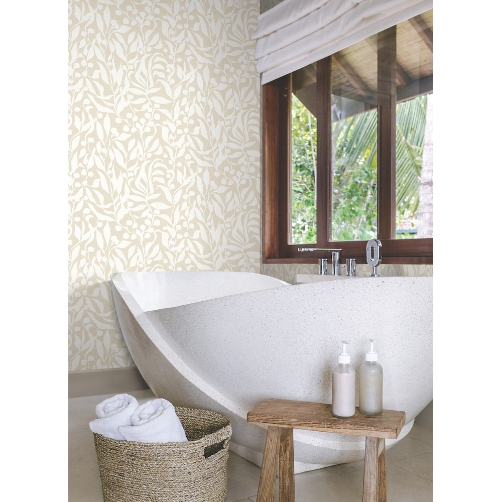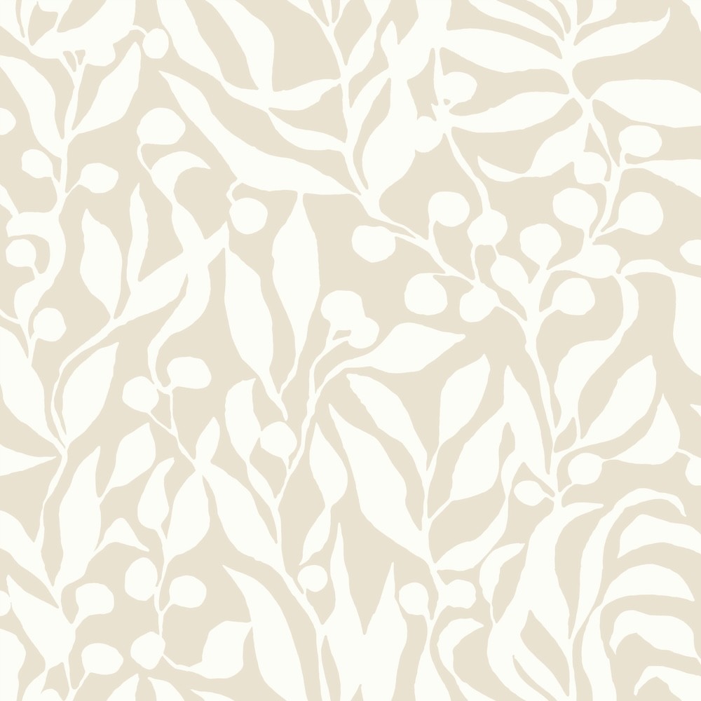 Simple silhouettes of both fruit and branch makes Olive Mill a compelling interplay of shape and contrast between white and sandy beige. This Olive Mill Wallpaper measures approximately 20.5 inches wide by 33 feet long, measuring approximately 56.4 square feet per roll.