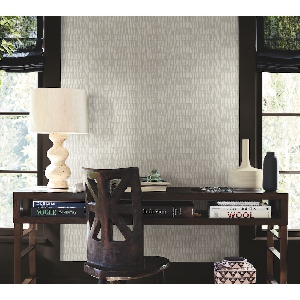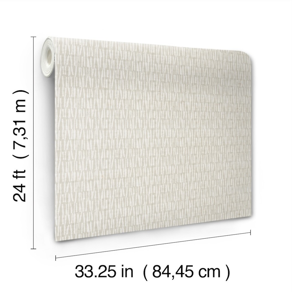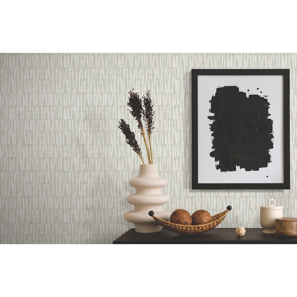 Jagged lines mimic outcroppings of river reeds, the allusion heightened by a sisal base in pattern Thatched. Pictured here in cream and pale grey. This Thatched Wallpaper measures approximately 33.25 inches wide by 24 feet long, measuring approximately 66.5 square feet per roll.