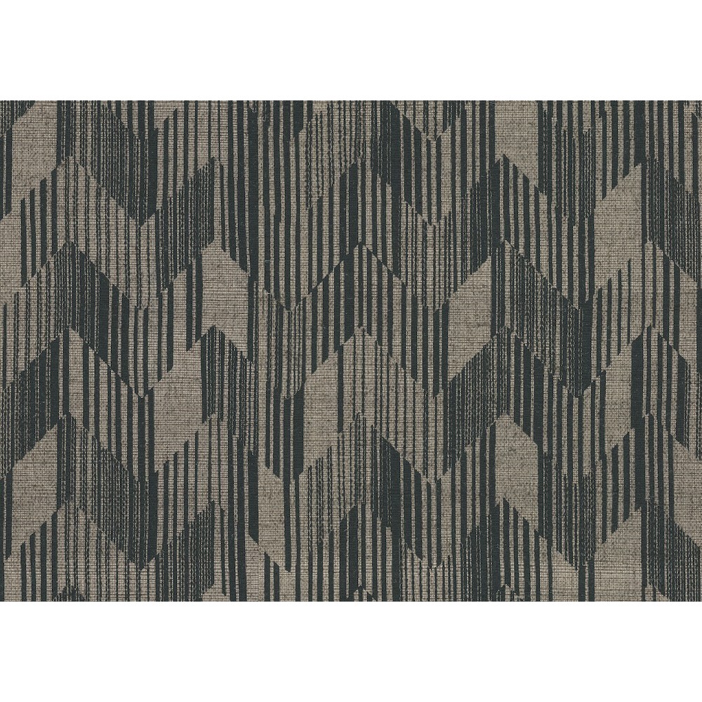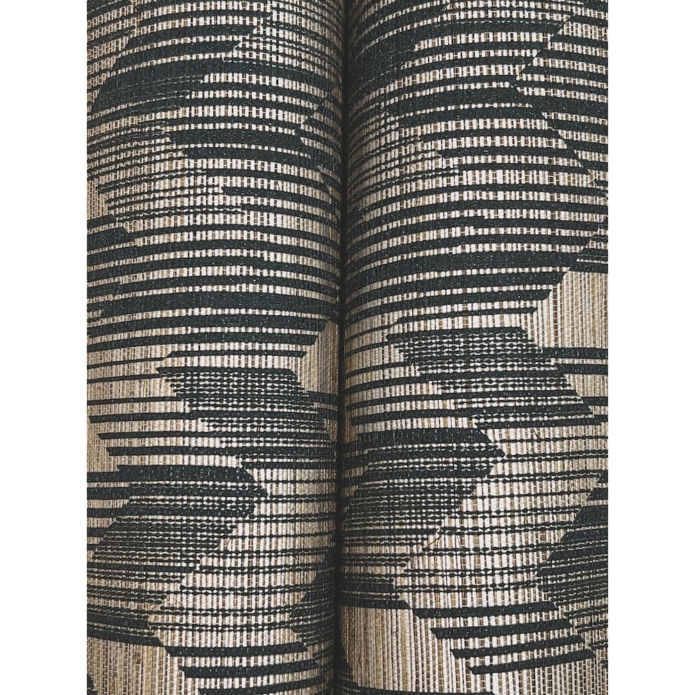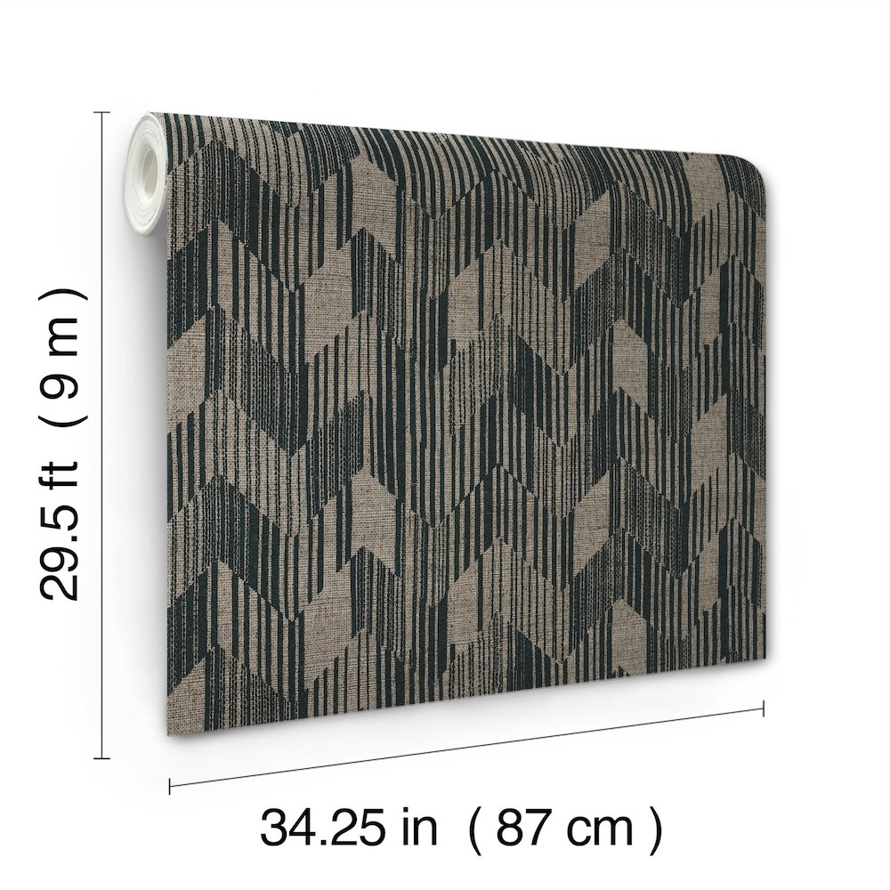 Dynamic striping, metallic luster, and a woven grasscloth construction offers an indulgently luxurious take on the classic chevron. Pictured here in glittering black, variegated wheat, and silver . This Birch Wallpaper measures approximately 34.25 inches wide by 29.5 feet long, measuring approximately 84.2 square feet per roll.