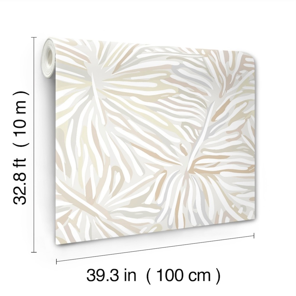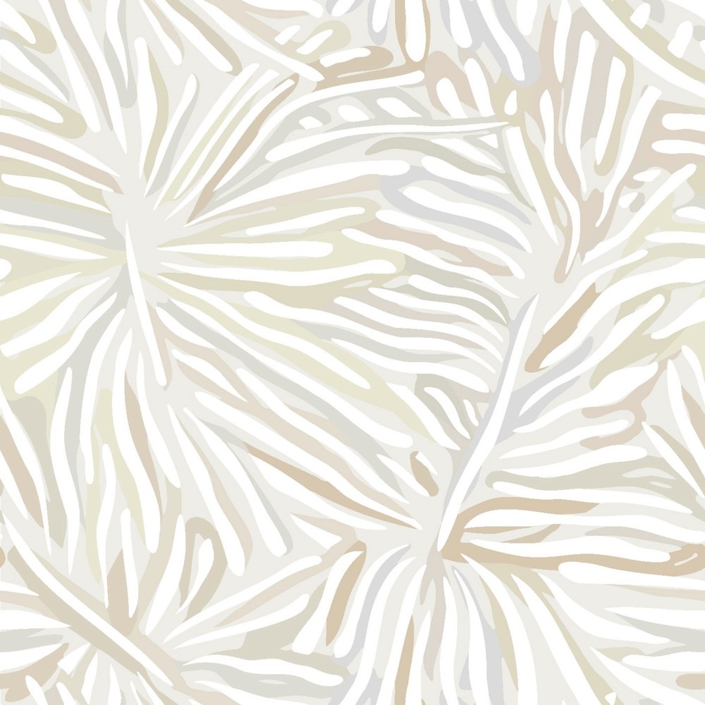 The abundance of tropical climes is captured in Flora's graphic interpretation of lush palms. Inked in soft neutral hues, including pale sage, taupe, steel blue, and white. This Flora Wallpaper measures approximately 39.3 inches wide by 32.8 feet long, measuring approximately 107.4 square feet per roll.