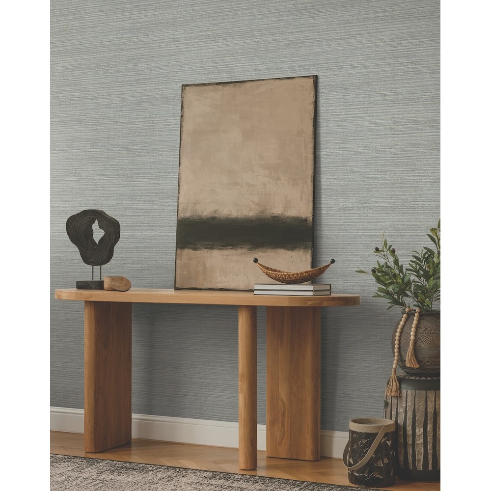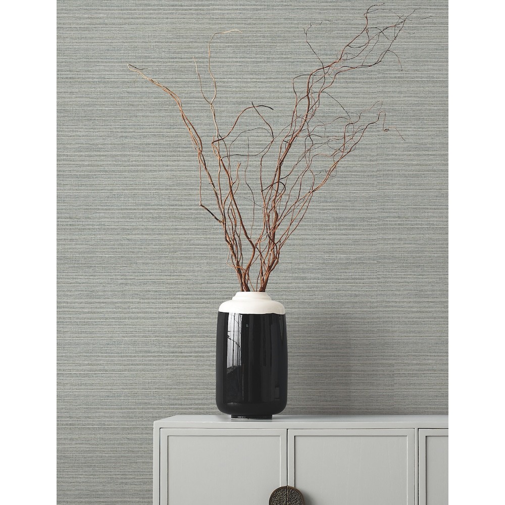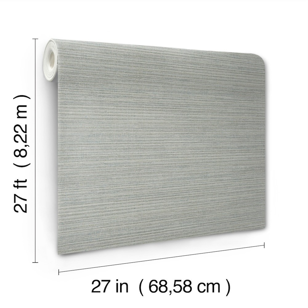 Amyra Silk’s beautiful woven multi-color texture and depth of field are created in High Performance vinyl for longevity and durability, shown here in grey with blue. This Amyra Silk Wallpaper measures approximately 27 inches wide by 27 feet long, measuring approximately 60.8 square feet per roll.