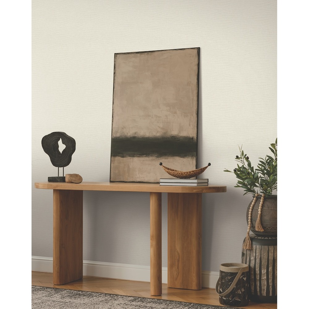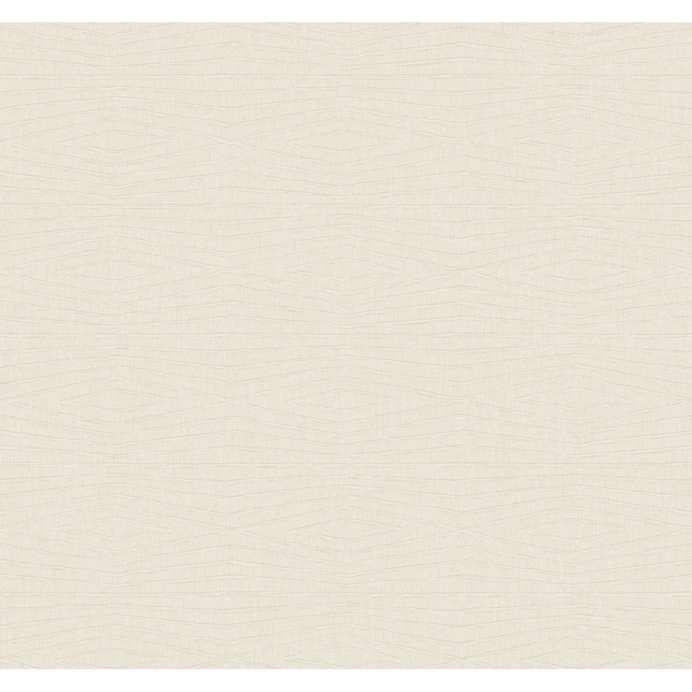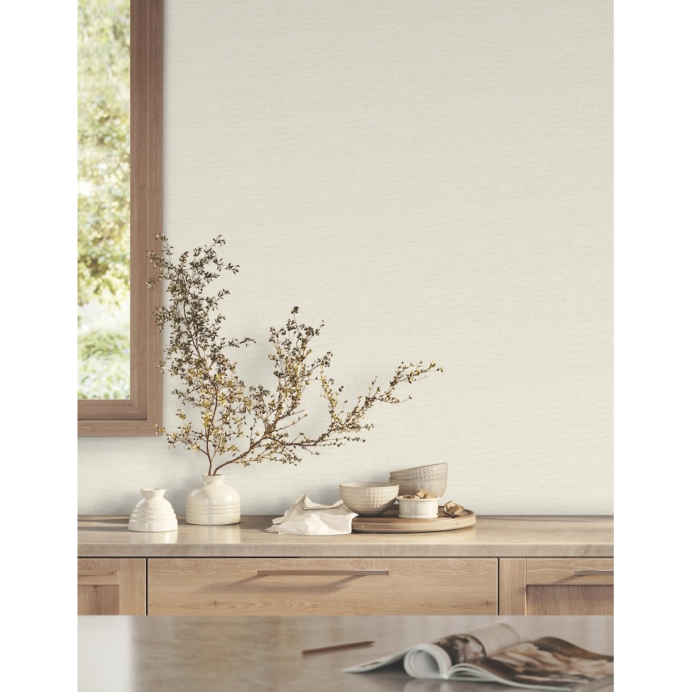 Raised lines flow and flex with horizontal dimension in Daystone's abstract geometric that mixes modern symmetry with hand-drawn artistry, shown here in pearl with raised white. This Daystone Wallpaper measures approximately 27 inches wide by 27 feet long, measuring approximately 60.8 square feet per roll.