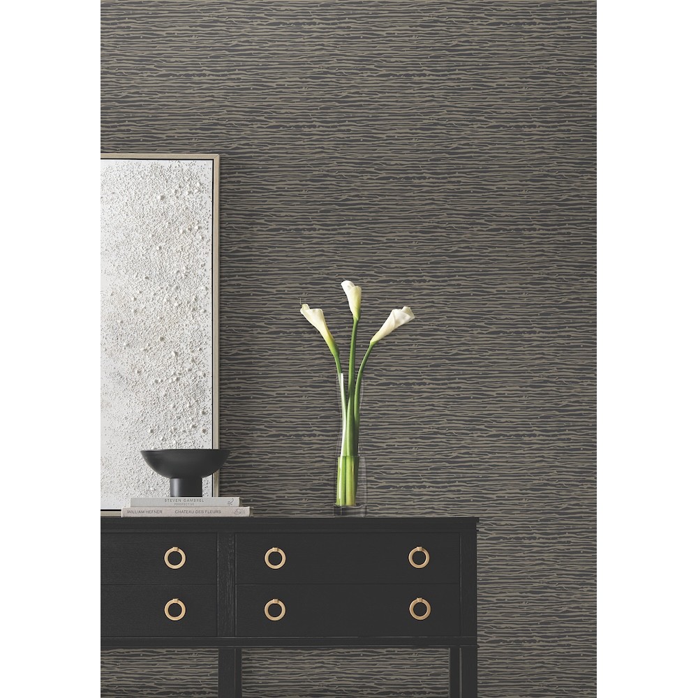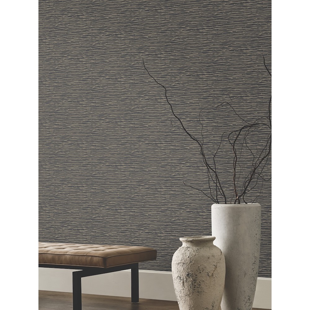 A dreamy vision of terrain across the Horizons inspires an artistic approach to the rugged lines that create this composition, featured in charcoal gray and tan. This Horizons Wallpaper measures approximately 27 inches wide by 27 feet long, measuring approximately 60.8 square feet per roll.
