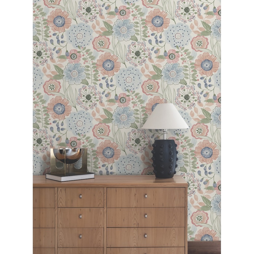 The whimsical nature of Artistic Bouquet's assortment of wildflowers and greenery is beautifully emphasized by the pattern's watercolor finishes. Featured here in a palette of pinks, blues, greens, and plum. This Artistic Bouquet Wallpaper measures approximately 27 inches wide by 27 feet long, measuring approximately 60.8 square feet per roll. Drawing inspiration from the gestural fluidity of turn of the century artwork, Artisan Studio offers an exploration of color, abstraction, and organic forms.