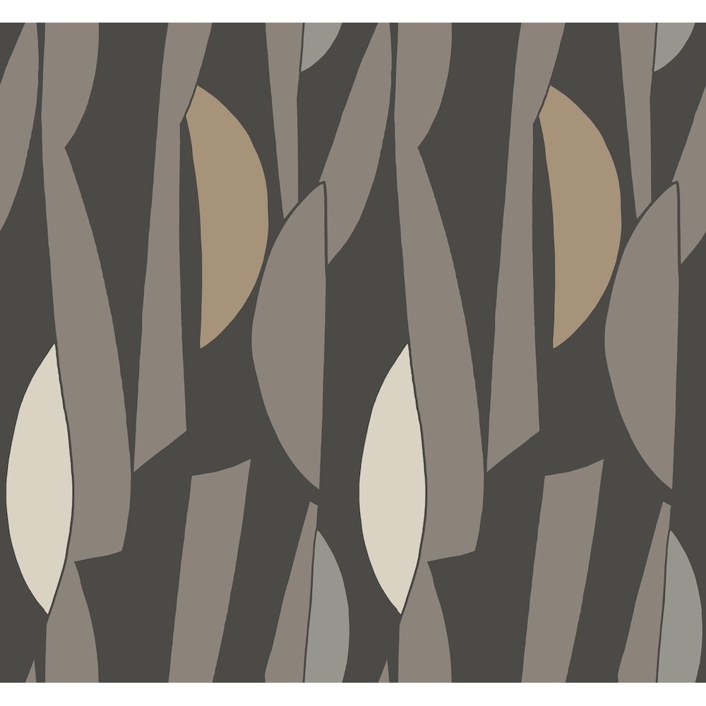 Pattern Balance showcases organic forms with a perfect harmony between straight edges and curved profiles. Featured here in black, smokey grey, cream, and metallic gold. This Balance Wallpaper measures approximately 27 inches wide by 27 feet long, measuring approximately 60.8 square feet per roll.