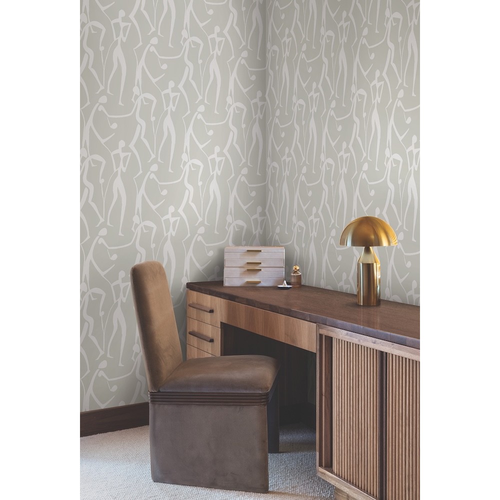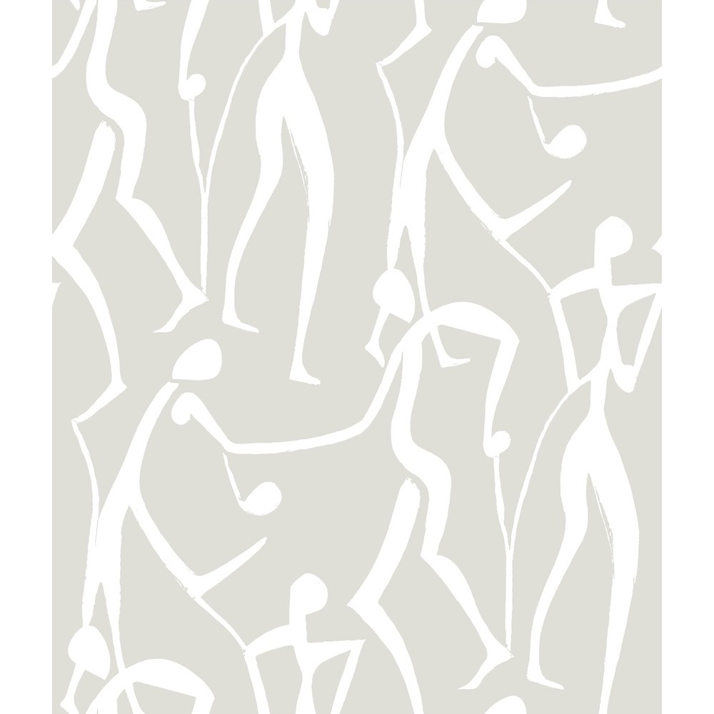 Free-flowing human figures move to the rhythms of life in Joyful Dancers' expressive celebration. Featured here in white and pale grey. This Joyful Dancers Wallpaper measures approximately 20.5 inches wide by 33 feet long, measuring approximately 56.4 square feet per roll.