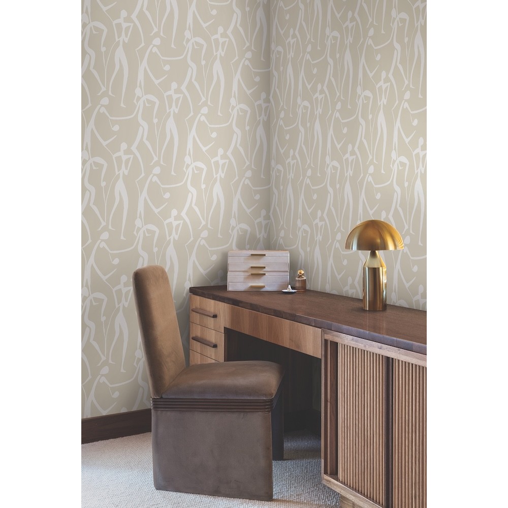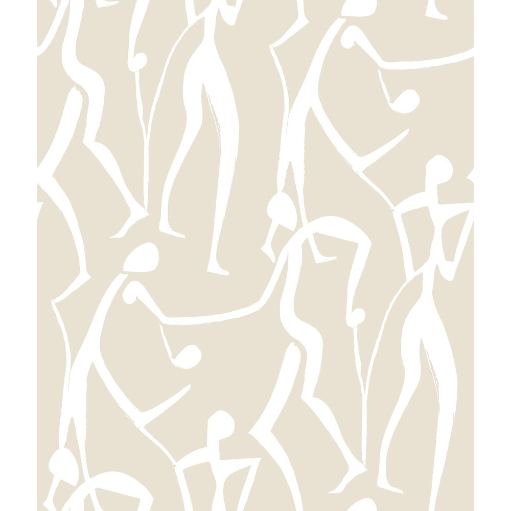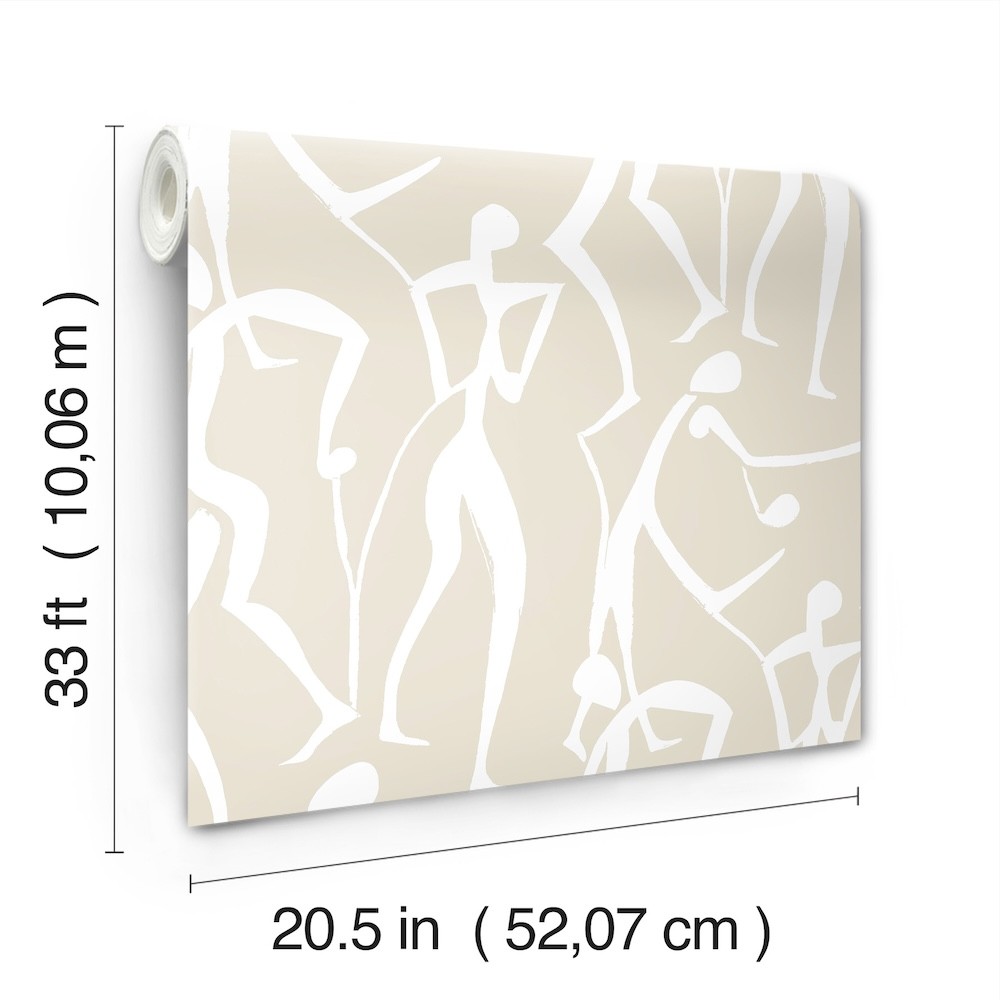 Free-flowing human figures move to the rhythms of life in Joyful Dancers' expressive celebration. Featured here in white and pale beige. This Joyful Dancers Wallpaper measures approximately 20.5 inches wide by 33 feet long, measuring approximately 56.4 square feet per roll.