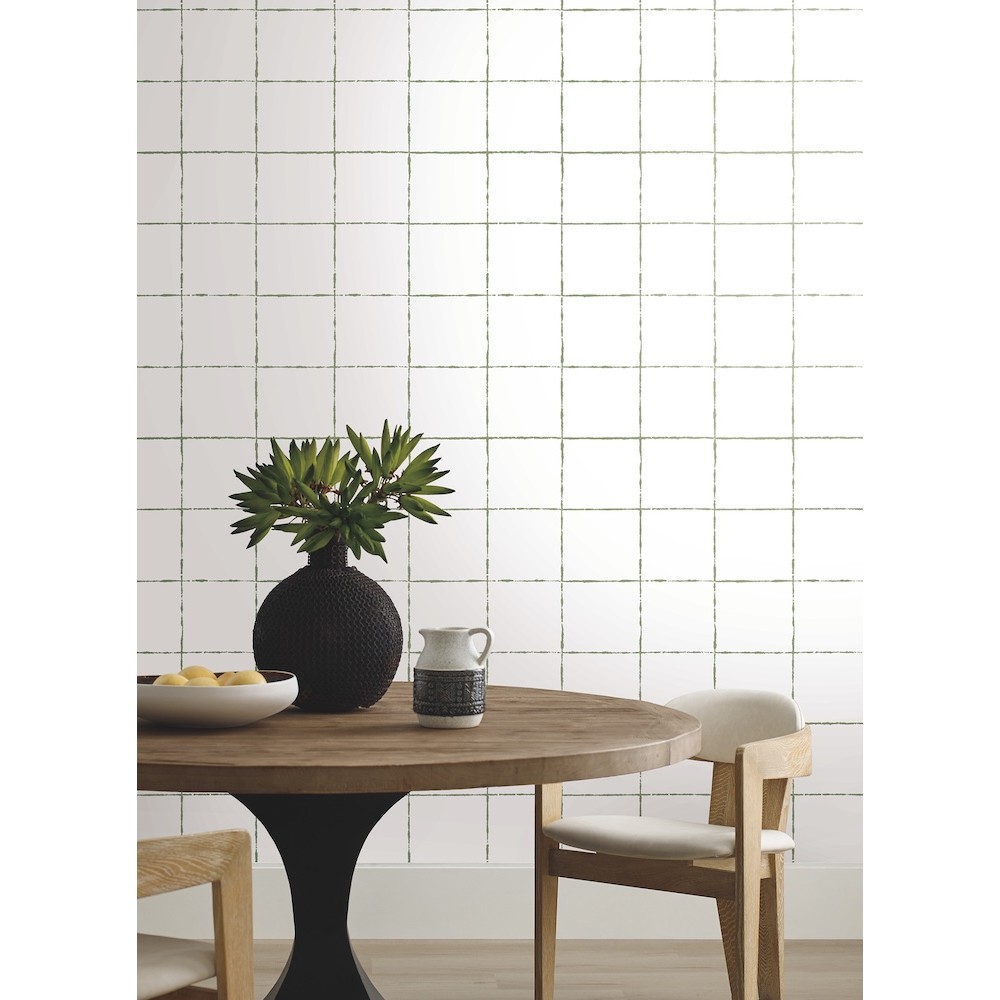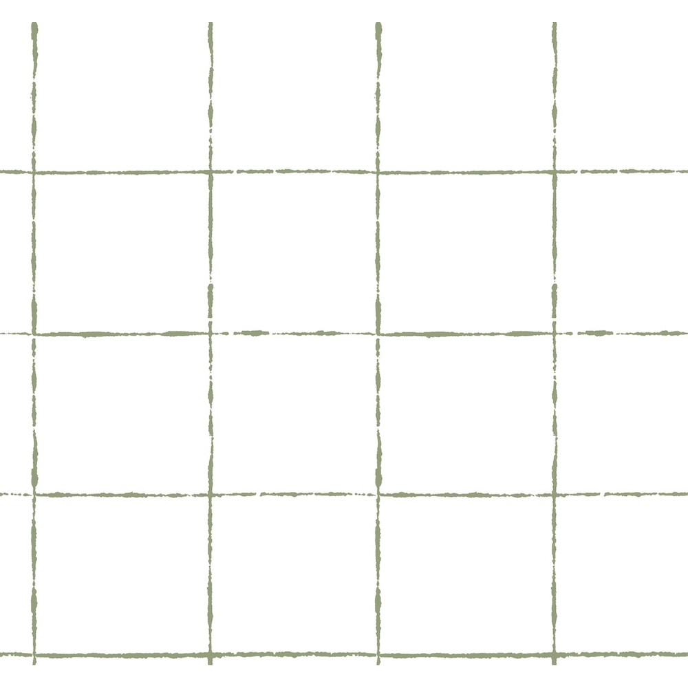 La Vitre Plaid offers a minimalistic take on the iconic pattern's line density counterbalanced with elevated finishes to said markings. Featured here with raised sage lines against white. This La Vitre Plaid Wallpaper measures approximately 27 inches wide by 27 feet long, measuring approximately 60.8 square feet per roll.