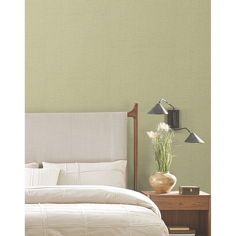 Loom replicates the sturdy, dense weave of performance fabrics down to its tactile hand. Featured here in light olive. This Loom Wallpaper measures approximately 20.8 inches wide by 32.9 feet long, measuring approximately 57 square feet per roll.