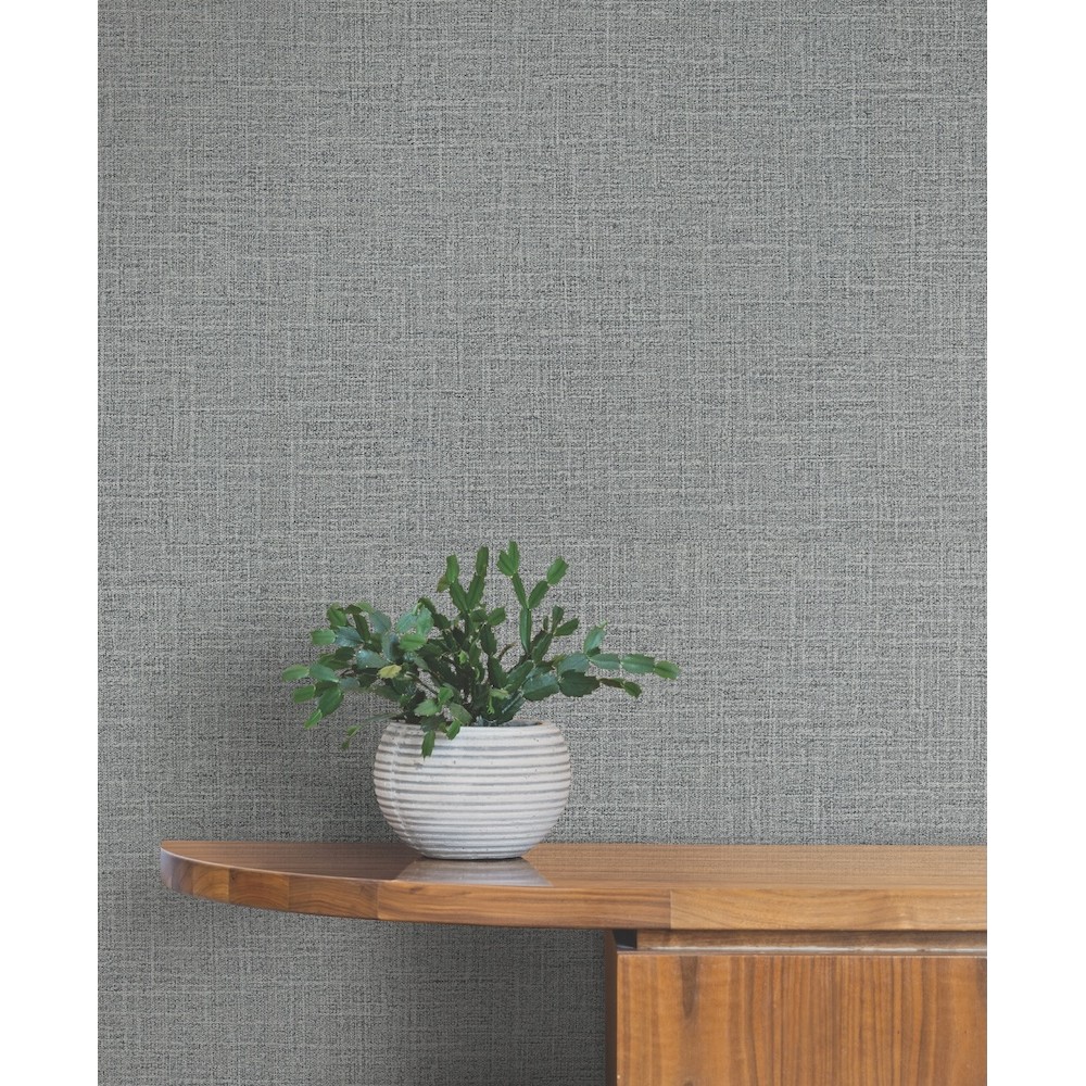 Loom replicates the sturdy, dense weave of performance fabrics down to its tactile hand. Featured here in smokey grey. This Loom Wallpaper measures approximately 20.8 inches wide by 32.9 feet long, measuring approximately 57 square feet per roll.