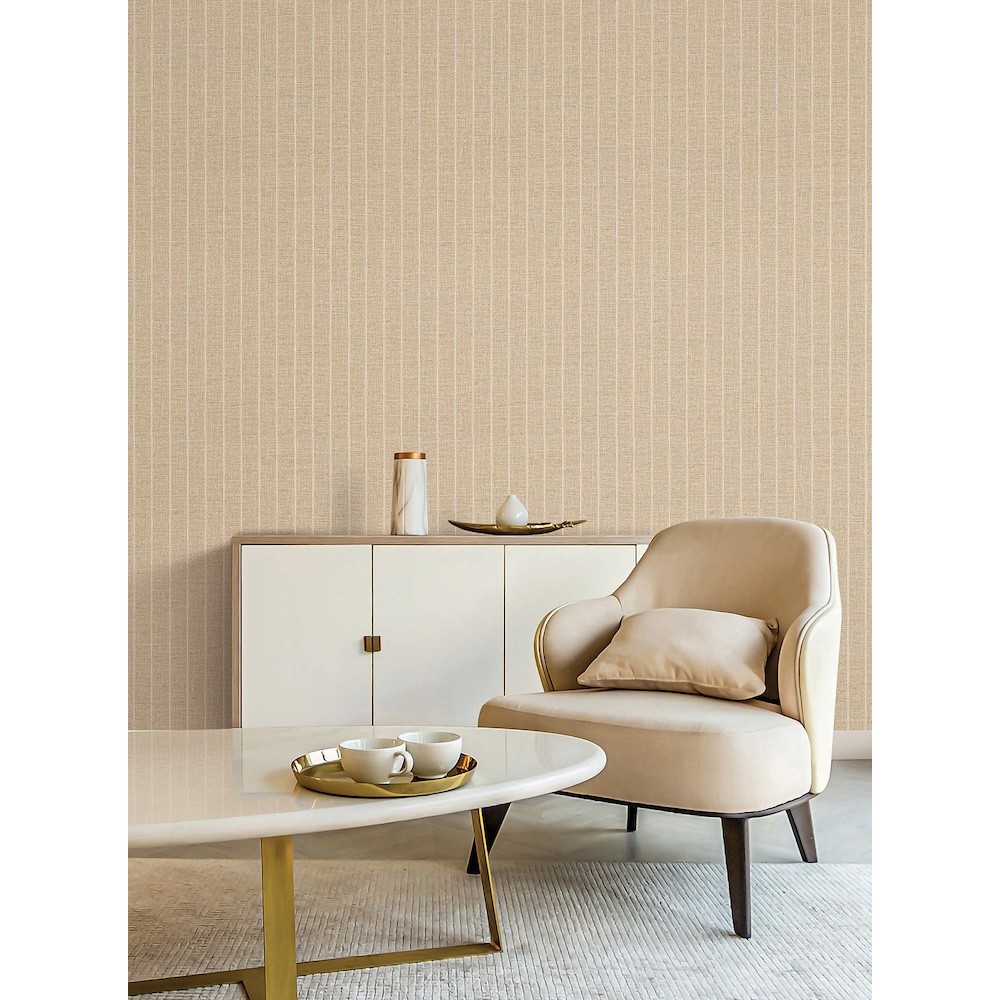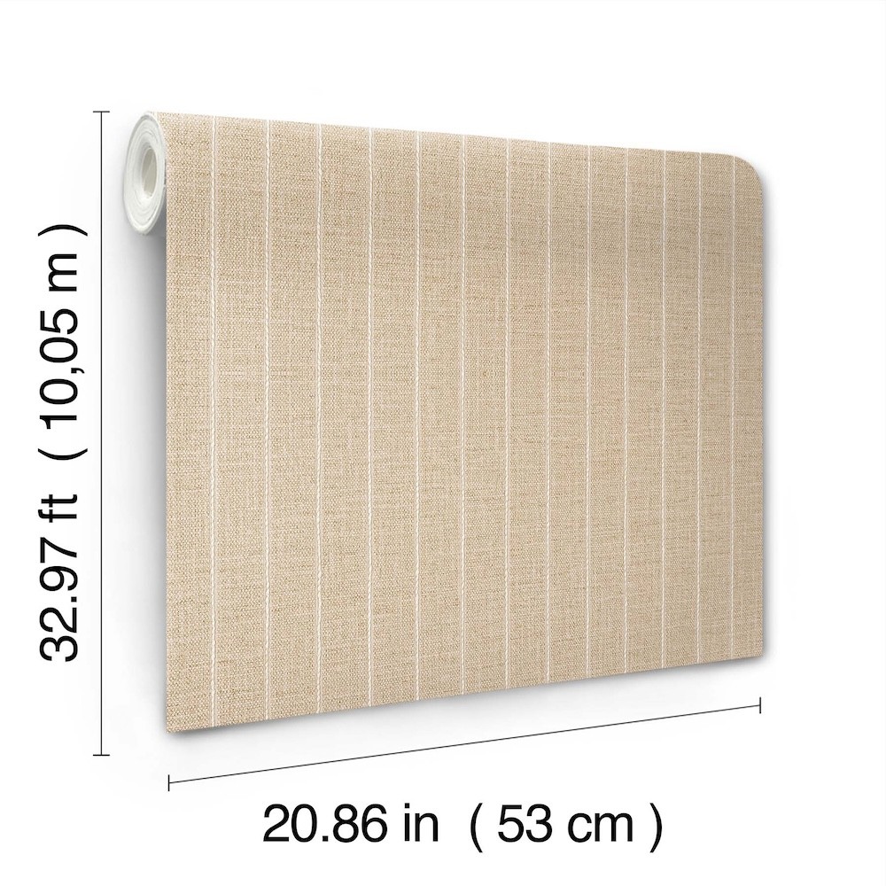 Vertical twisted trim in the pattern Cording Stripe adds texture to its woven canvas, creating a blend of classic and cottage styles. Featured here in pearlescent and sienna. This Cording Stripe Wallpaper measures approximately 20.9 inches wide by 33 feet long, measuring approximately 57.5 square feet per roll.