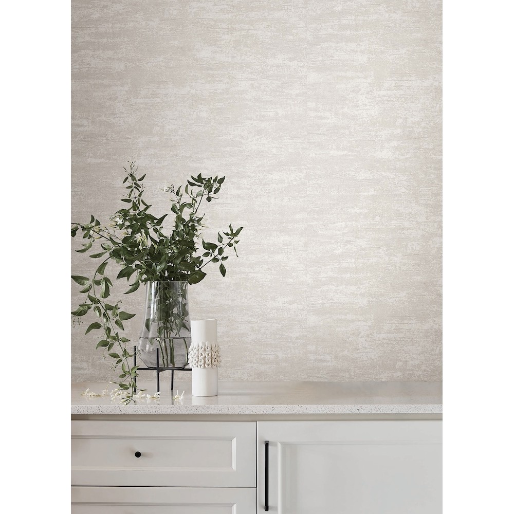 The cracking, uneven finish, and appearance of Weathered Stucco produce a texture with rustic charm and a vintage feel, featured in pearl white.