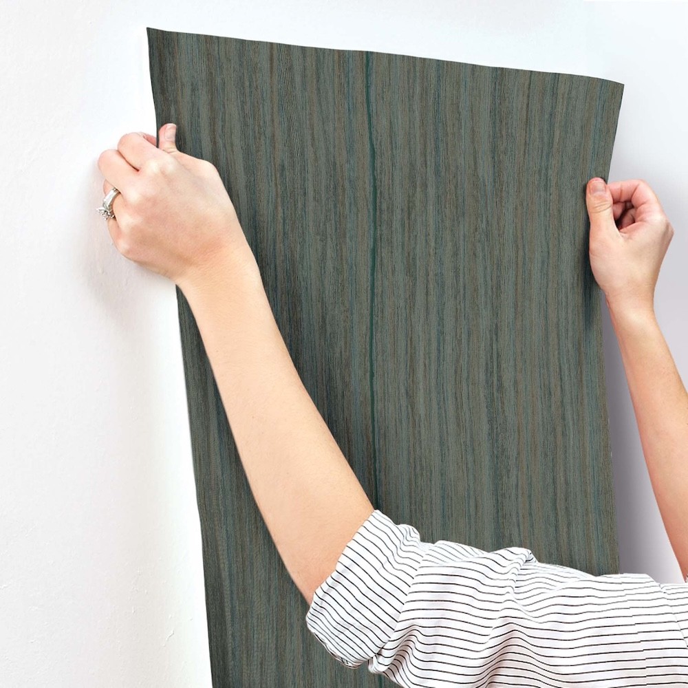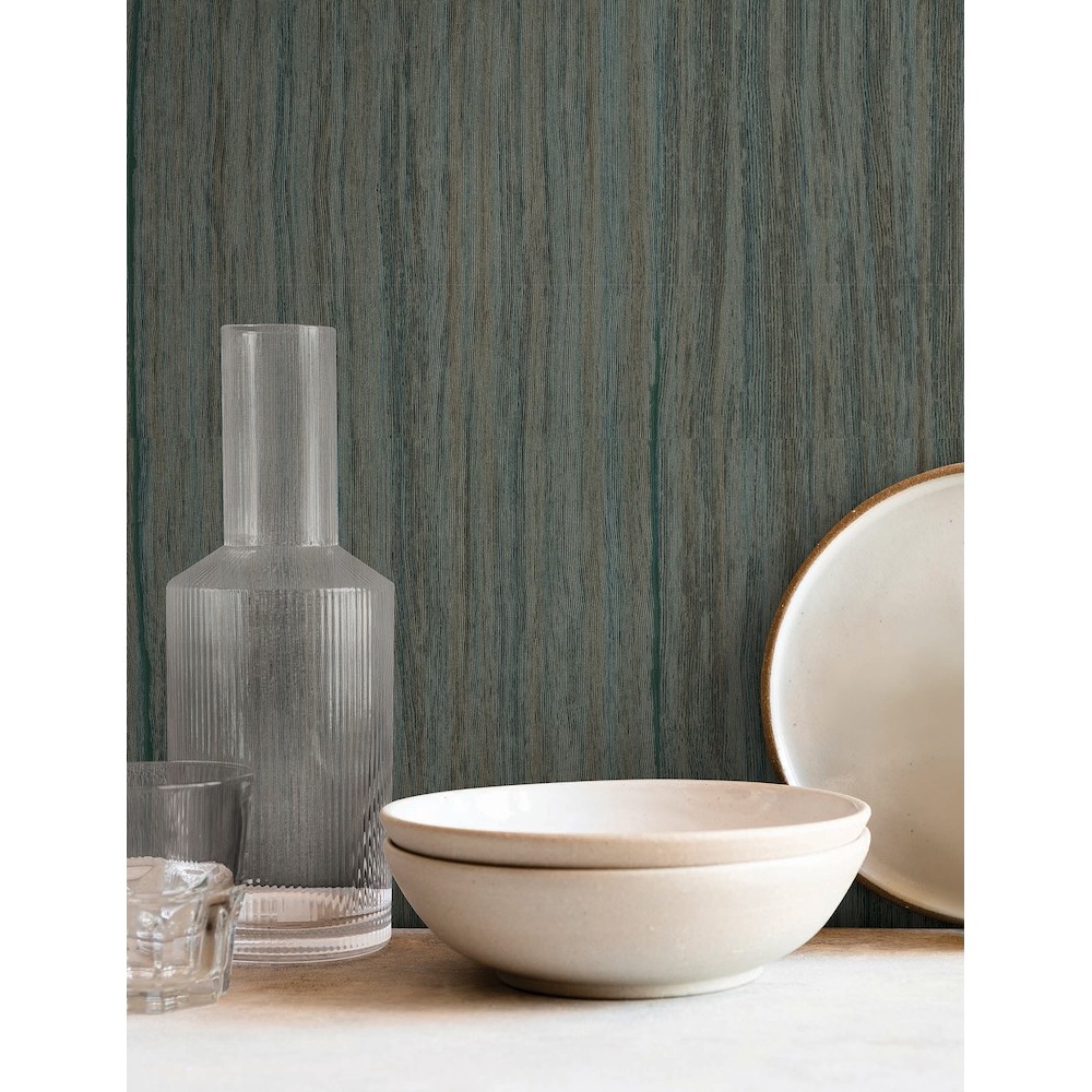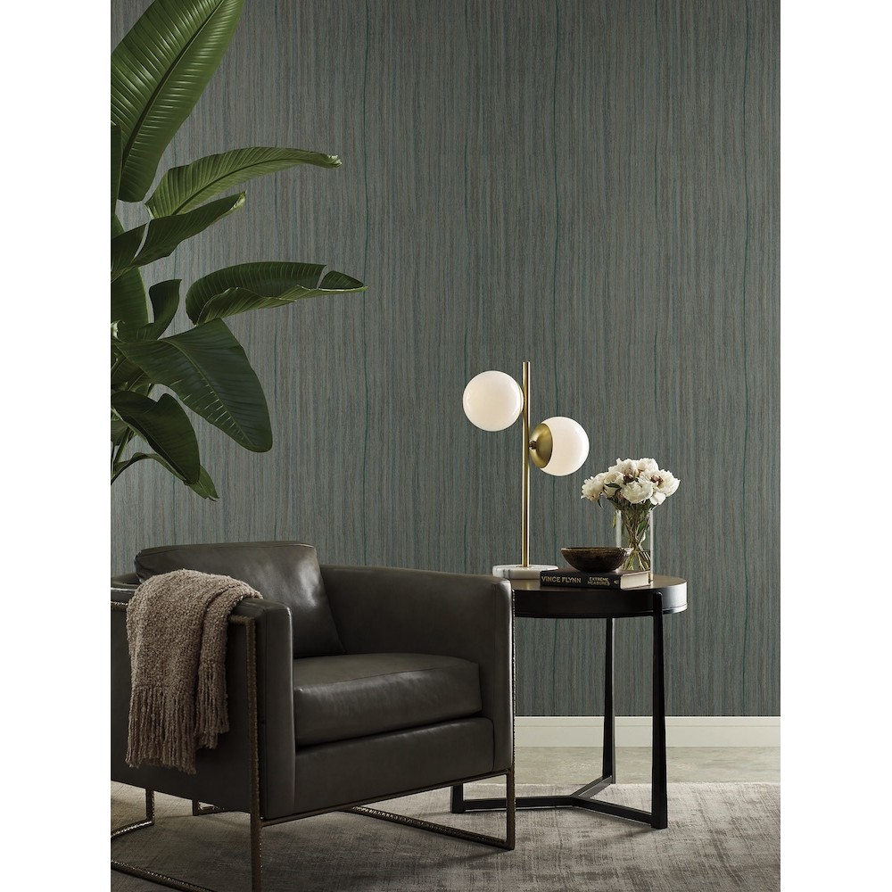Wistman Stripe's vertical lines act as a nature-inspired wood grain texture streaked with vivacious contemporary color. Featured here in graphite and teal.