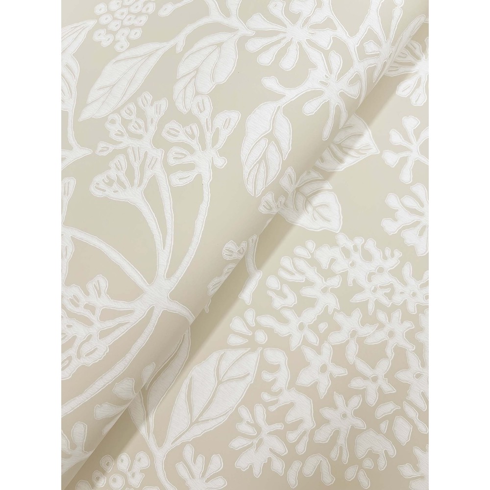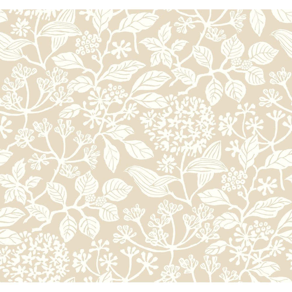 Pattern Rowan encapsulates the beauty of tree's many phases of greenery, flowering, and fruit through artistic silhouettes. The botanical details are inked in white against a sandy beige backdrop. Rowen is an unpasted, non woven wallpaper measuring 27 inches wide by 27 feet long, covering approximately 60.8 square feet per roll.
