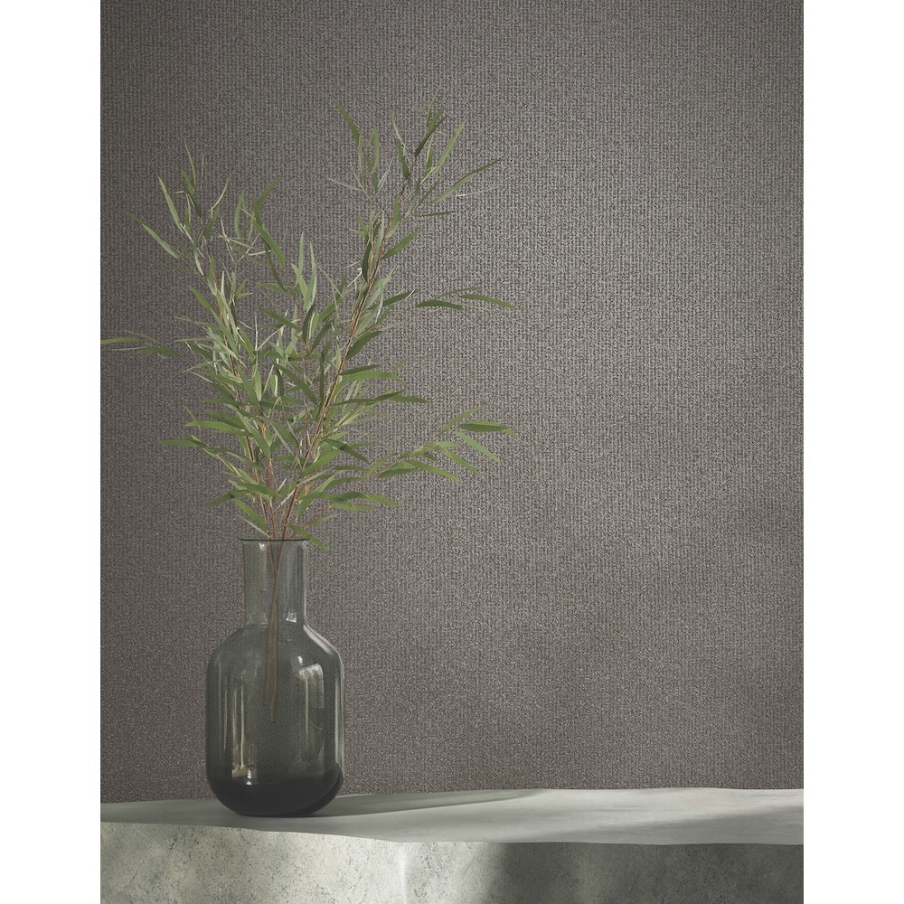 Shimmering flecks of Glistening Quartz catch the light and add texture to this chic wallpaper. Seen here with pearlescent beads along a metallic smokey-grey backdrop. Glistening Quartz is an unpasted, vinyl wallpaper measuring 27.6 inches wide by 33 feet long, covering approximately About 75.9 square feet square feet per roll.