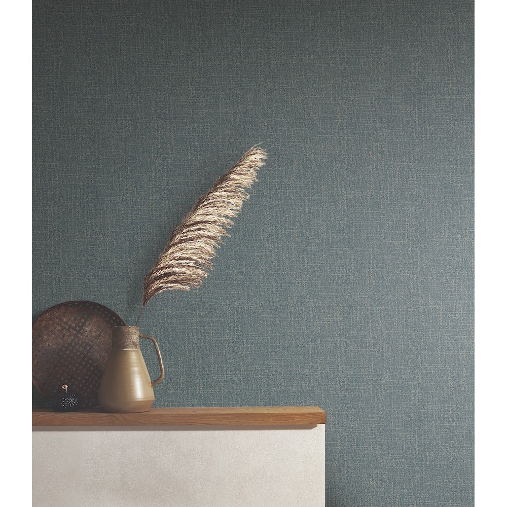 Pattern Highland Tweed captures the sophisticated look of the iconic fabric. Featured here in deep blue laced with muted gold. Highland Tweed is an unpasted, vinyl wallpaper measuring 27.6 inches wide by 33 feet long, covering approximately About 75.9 square feet square feet per roll.