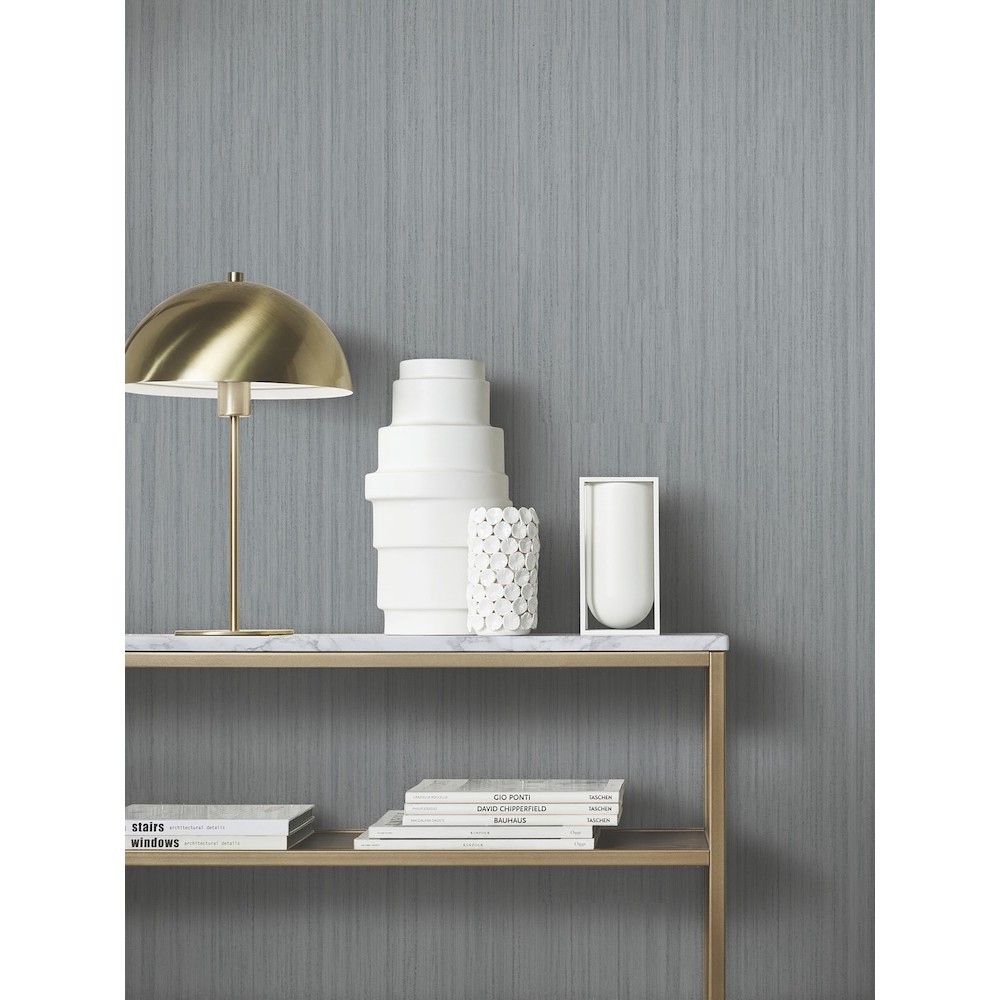 Thin, tactile striations are elevated with subtle tonal variations in textured design Indra. Featured here in smokey grey hues. Indra is an unpasted, vinyl wallpaper measuring 27.6 inches wide by 33 feet long, covering approximately About 75.9 square feet square feet per roll.
