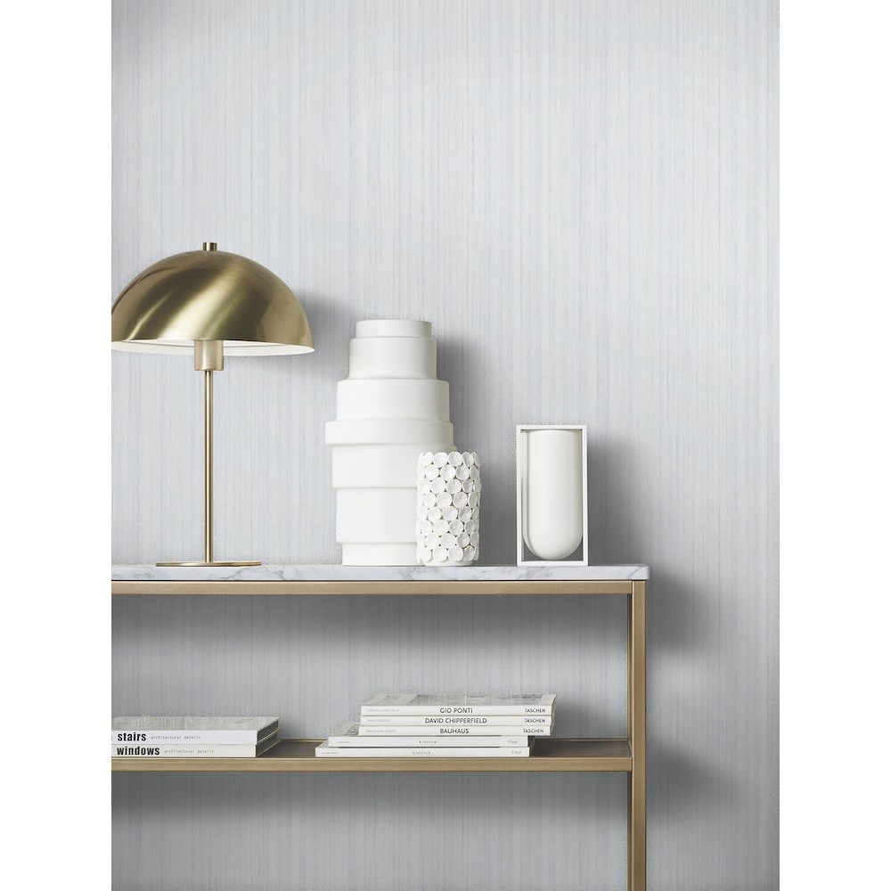 Thin, tactile striations are elevated with subtle tonal variations in textured design Indra. Featured here in cool grey hues. Indra is an unpasted, vinyl wallpaper measuring 27.6 inches wide by 33 feet long, covering approximately About 75.9 square feet square feet per roll.