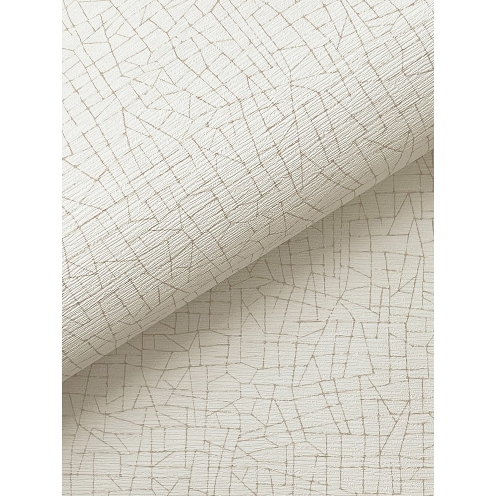 A petite grid of irregular shapes offers subtle embellishment in pattern Cary. Featured here with metallic gold linework against a warm white backdrop.
