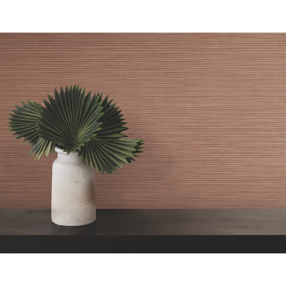 The thin bands and even stitching of pattern Lorn results in a neat and uniform faux grasscloth design. Featured here in shades of terracotta, brick red, and charcoal.