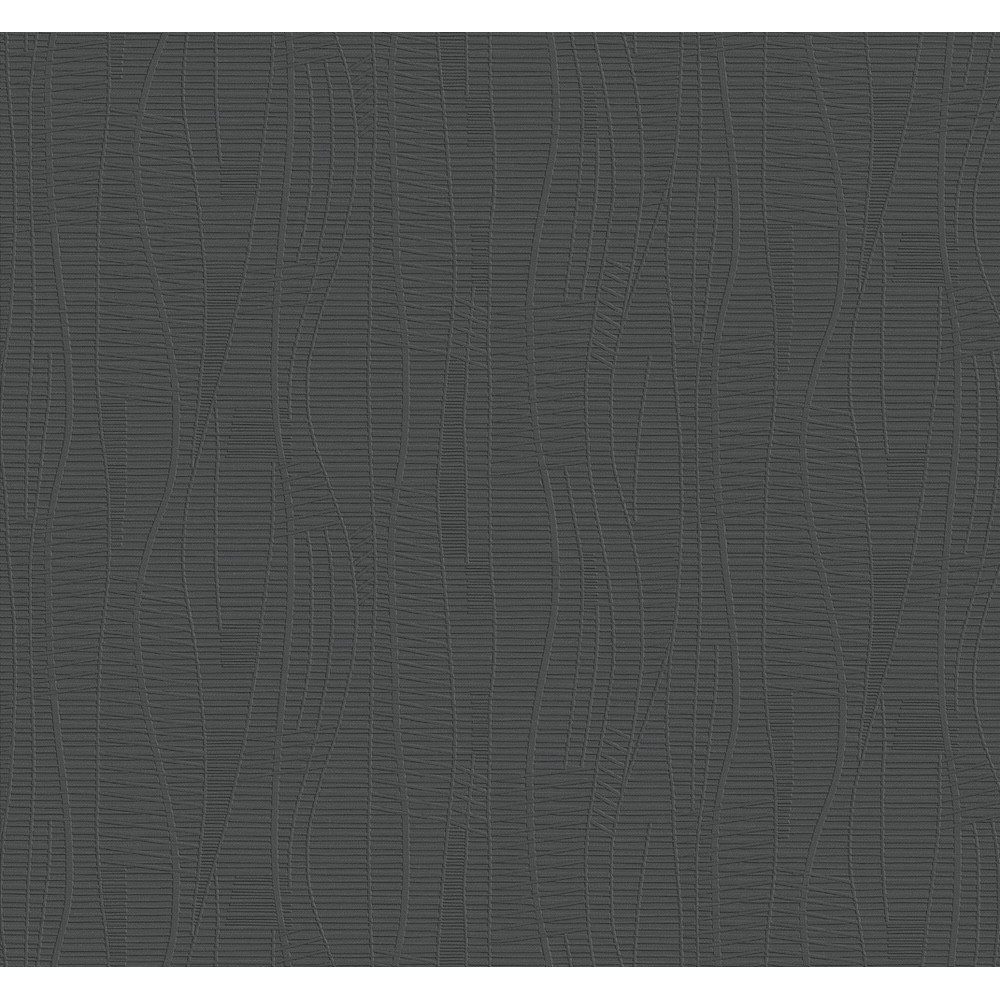 Embossed and curving crosshatching adds texture and modern intrigue to pattern Amir. Featured here in black.