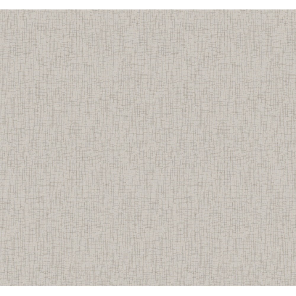 Several layers of abstract, maze-like grids overlap to create simple intrigue in pattern Aden. Seen here with taupe and grey linework against light grey.