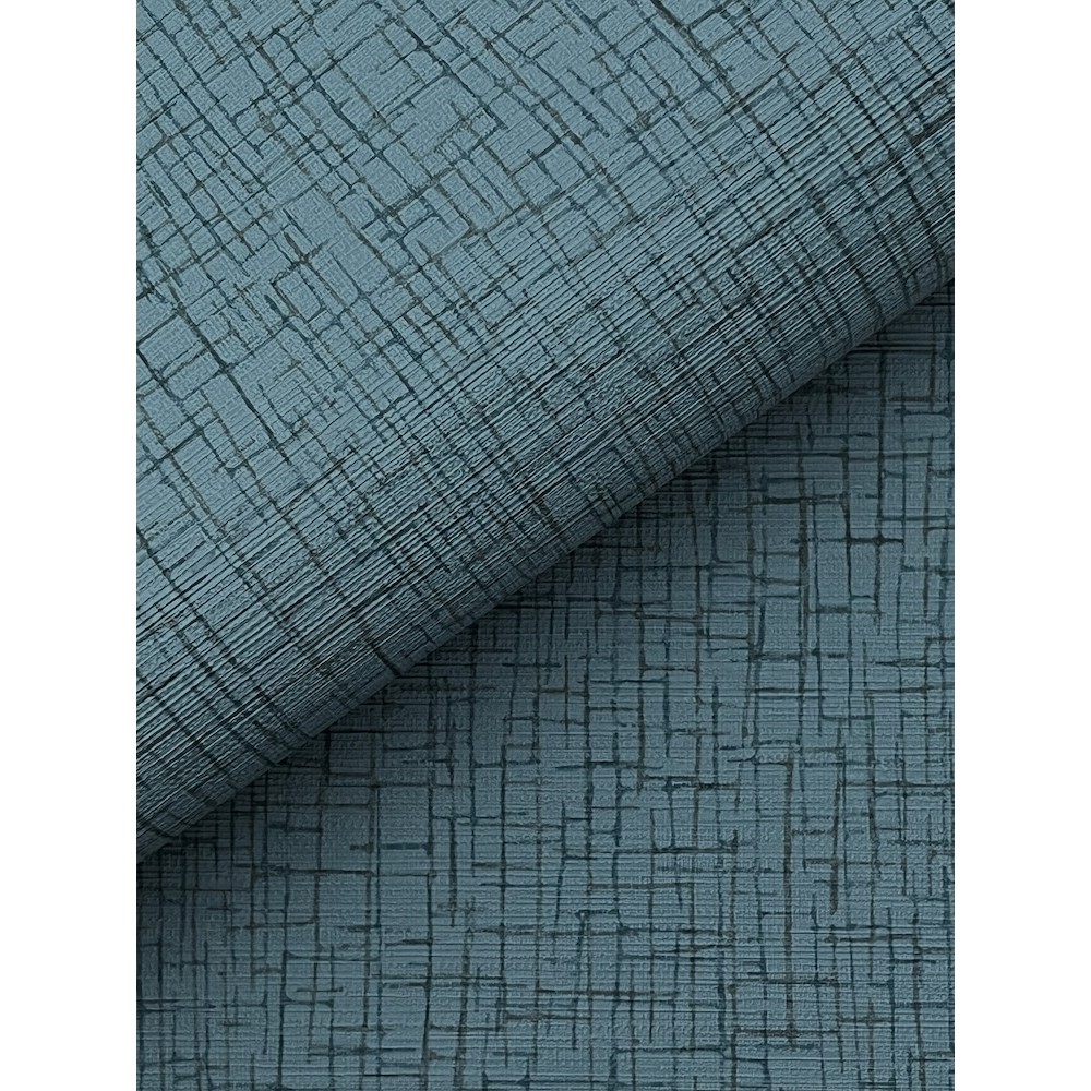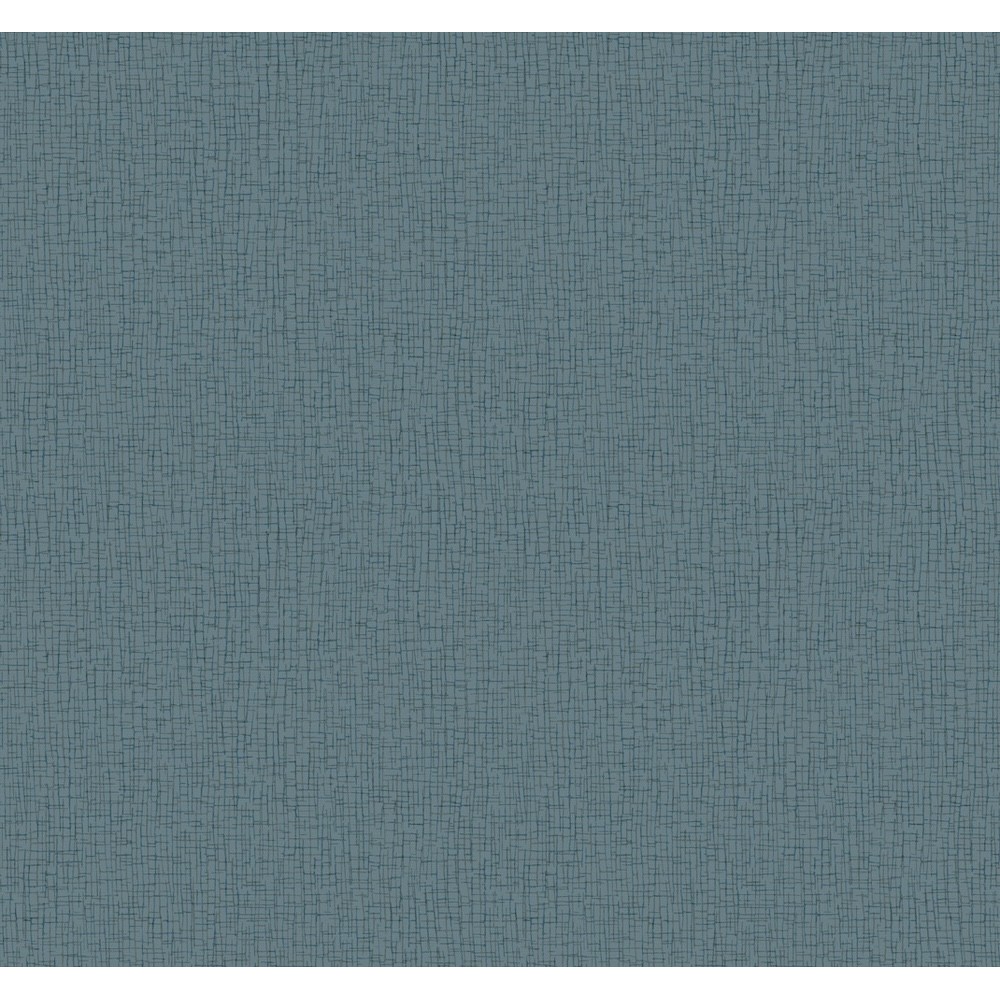 Several layers of abstract, maze-like grids overlap to create simple intrigue in pattern Aden. Seen here with teal and brown linework against blue.