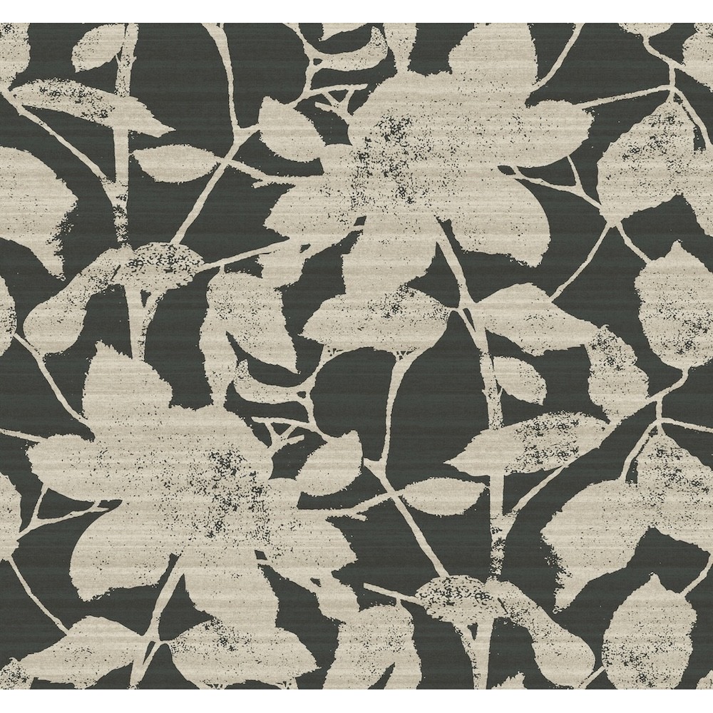 Solange's enticing silhouettes of woodland florals enjoy extra richness from their dappled overlay along a softly striated backdrop. Seen here inked in taupe against matte black. Solange is an unpasted, non woven wallpaper measuring 27 inches wide by 27 feet long, covering approximately 60.8 square feet per roll.