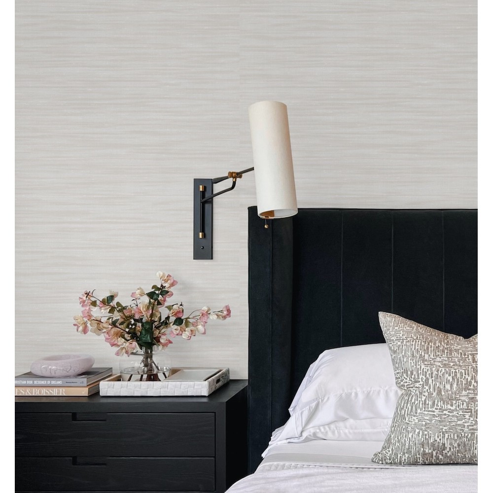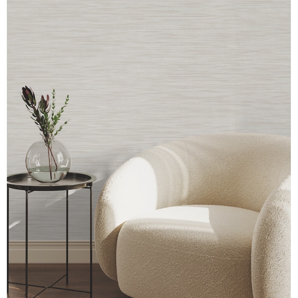 Pattern Sari Silk perfectly imitates the dense weave of delicate silken threads. Seen here in shades of cream and ivory. Sari Silk is an unpasted, non woven vinyl wallpaper measuring 27 inches wide by 27 feet long, covering approximately About 60.8 square feet square feet per roll.
